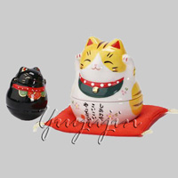 おきあがりこぼしの黒招き猫が中に入る入れ子の招き猫小物入れです