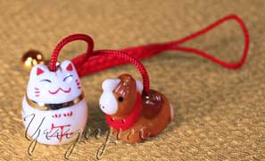 カレンダー、小物入れ、貯金箱、根付などいつも身近で福を招いてくれますよ。