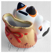 かわいい招き猫の貯金箱や宝くじ入れです。がんばって金運を招いてくれるかも。