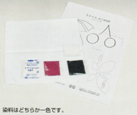 素材:綿 仕上がりサイズ:380x580mm (セット内容) ろうけつ染めカラー:5g (藍・ピンクのどちらか一色) 定着剤:7g、ろう筆、図案(絞り方説明付き)